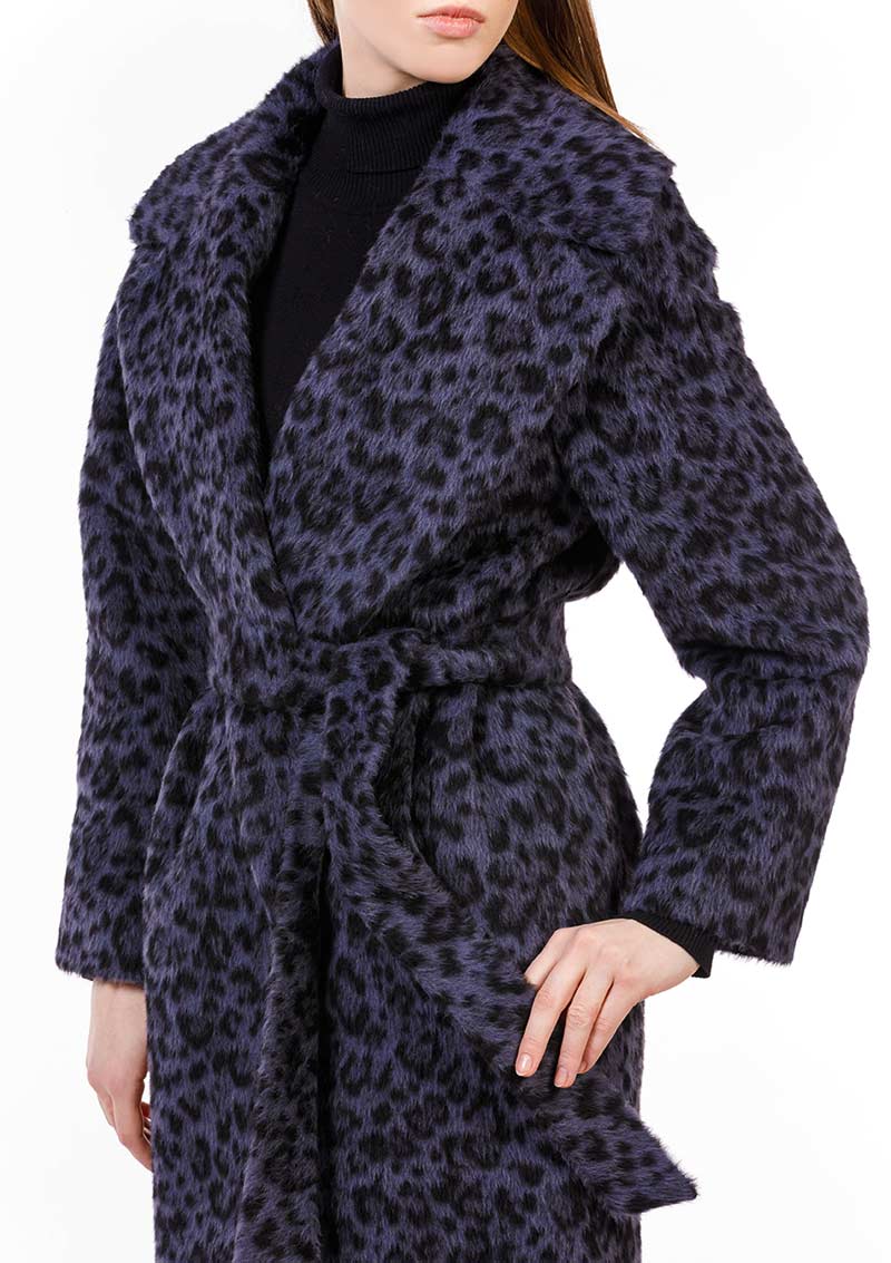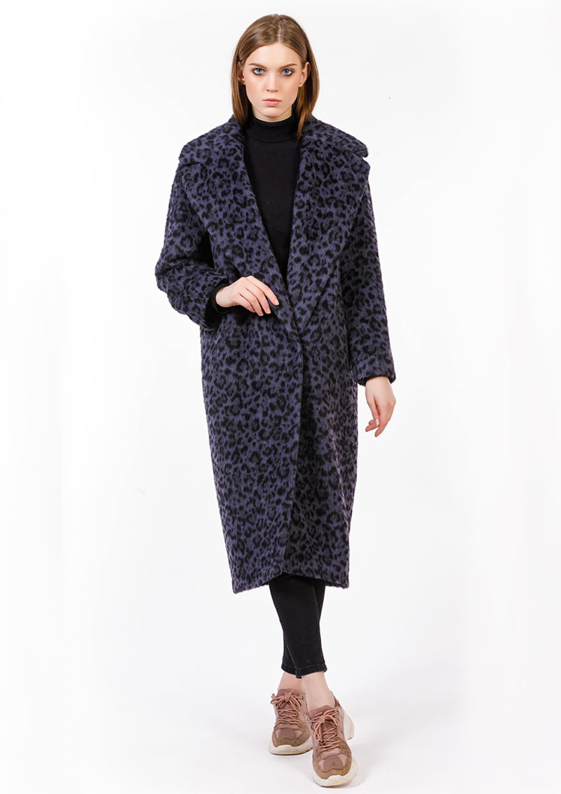 Классическое пальто-кокон из шерсти «беби сури альпака» с глубоким английским воротником (Леопард серо-синий)